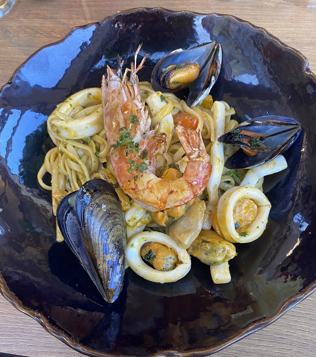 Delicious food in a lively atmosphere. Relatively expensive but the price range is expected in such a touristy area. Fantastic icecream worth your money. Would recommend!